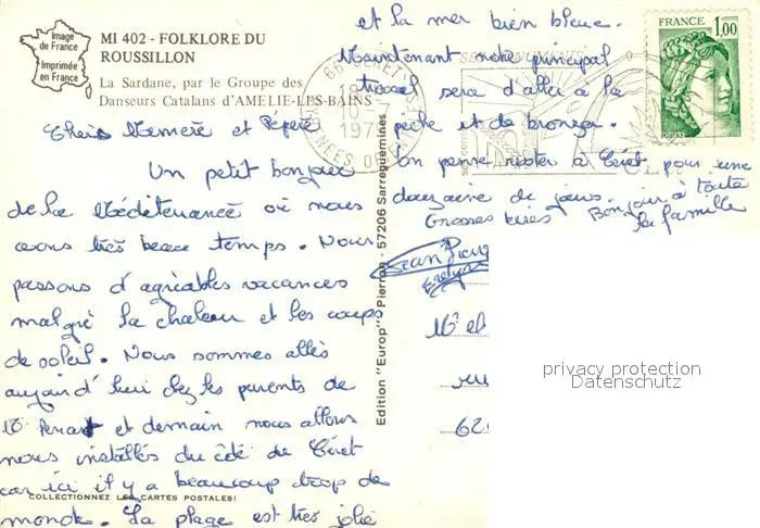 Roussillon_Vaucluse La Sardane par le Groupe des Danseurs Catalans d’Amelie les Bains Roussillon Vaucluse postalisch gelaufen 1977 Erhaltung siehe scans [WerneD78] WernPID7