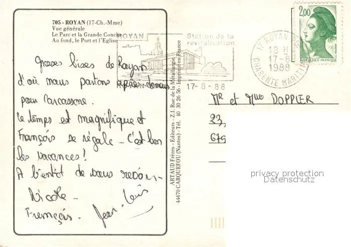 Royan_Charente-Maritime Parc Grande Conche au fond Port Eglise vue aérienne Royan Charente-Maritime postalisch gelaufen 1988 Erhaltung siehe scans [FriedD77] Frierer