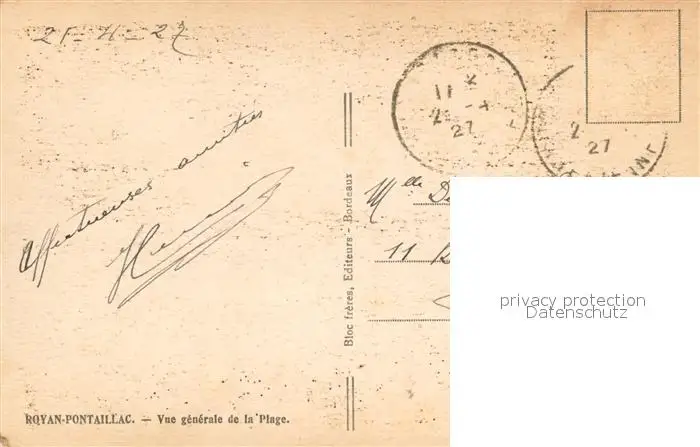 Royan_Charente-Maritime Vue generale de la Plage Royan Charente-Maritime postalisch gelaufen 1927 Erhaltung siehe scans [WerneD78] WernPID7