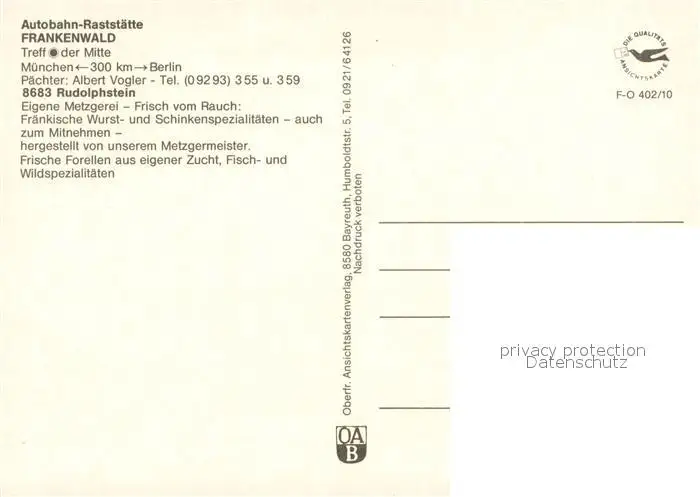 Rudolphstein Brueckenrasthaus Frankenwald Rudolphstein postalisch nicht gelaufen nach 1965 Erhaltung siehe scans [WerneD78] WernPID7