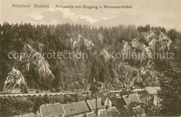 AK / Ansichtskarte Ruebeland_Harz Felspartie mit Eingang zur Hermannshoehle Ruebeland_Harz
