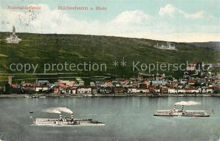 AK / Ansichtskarte Ruedesheim_Rhein Blick ueber den Rhein zum Nationaldenkmal Niederwald Rheindampfer Ruedesheim Rhein