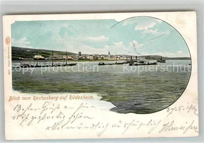 Ruedesheim Rhein Blick vom Rochusberg Ruedesheim postalisch gelaufen 1902 Bahnpost Erhaltung siehe scans [WerneD78] Bahnpost WernPID7
