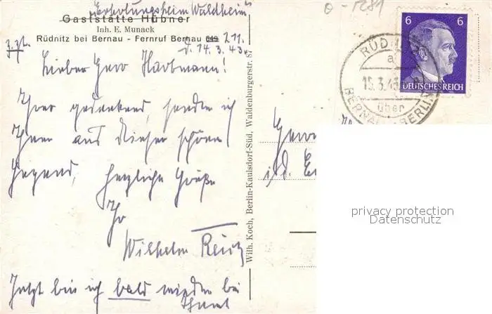 Ruednitz Am Dorfteich Ruednitz postalisch gelaufen 1943 Erhaltung siehe scans [KathaD81] Kathoren