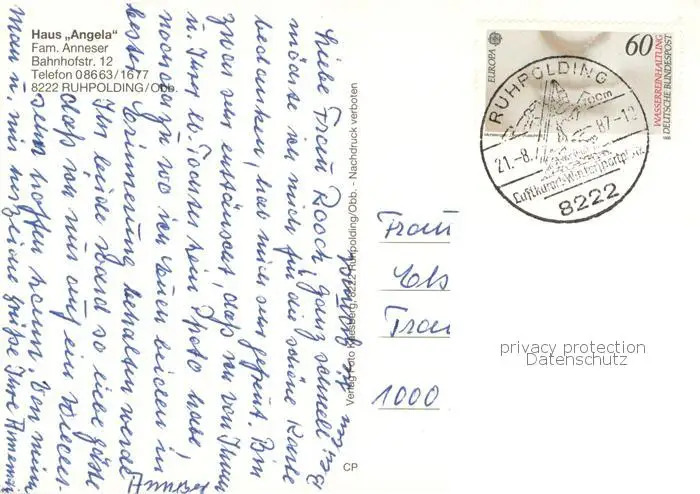 Ruhpolding Haus Angela Ruhpolding postalisch gelaufen 1987 Erhaltung siehe scans [WerneD78] WernPID7