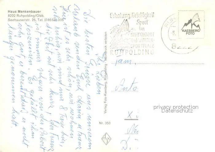 Ruhpolding Haus Menkenbauer Ruhpolding postalisch gelaufen nach 1965 Erhaltung siehe scans [FriedD77] Frierer