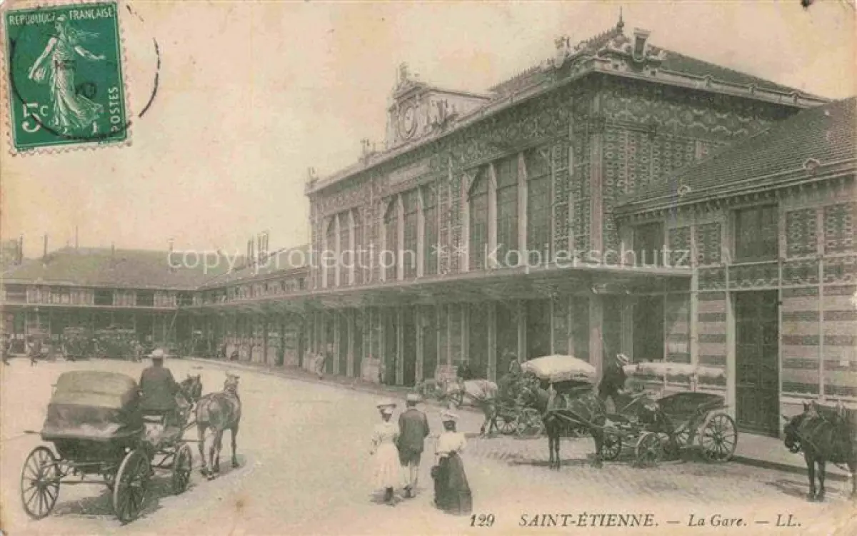 alte Postkarte SAINT-ETIENNE ST-ETIENNE 42 Loire La Gare Pferde Kutschen postalisch gelaufen Erhaltung siehe scans [IrynaD87]