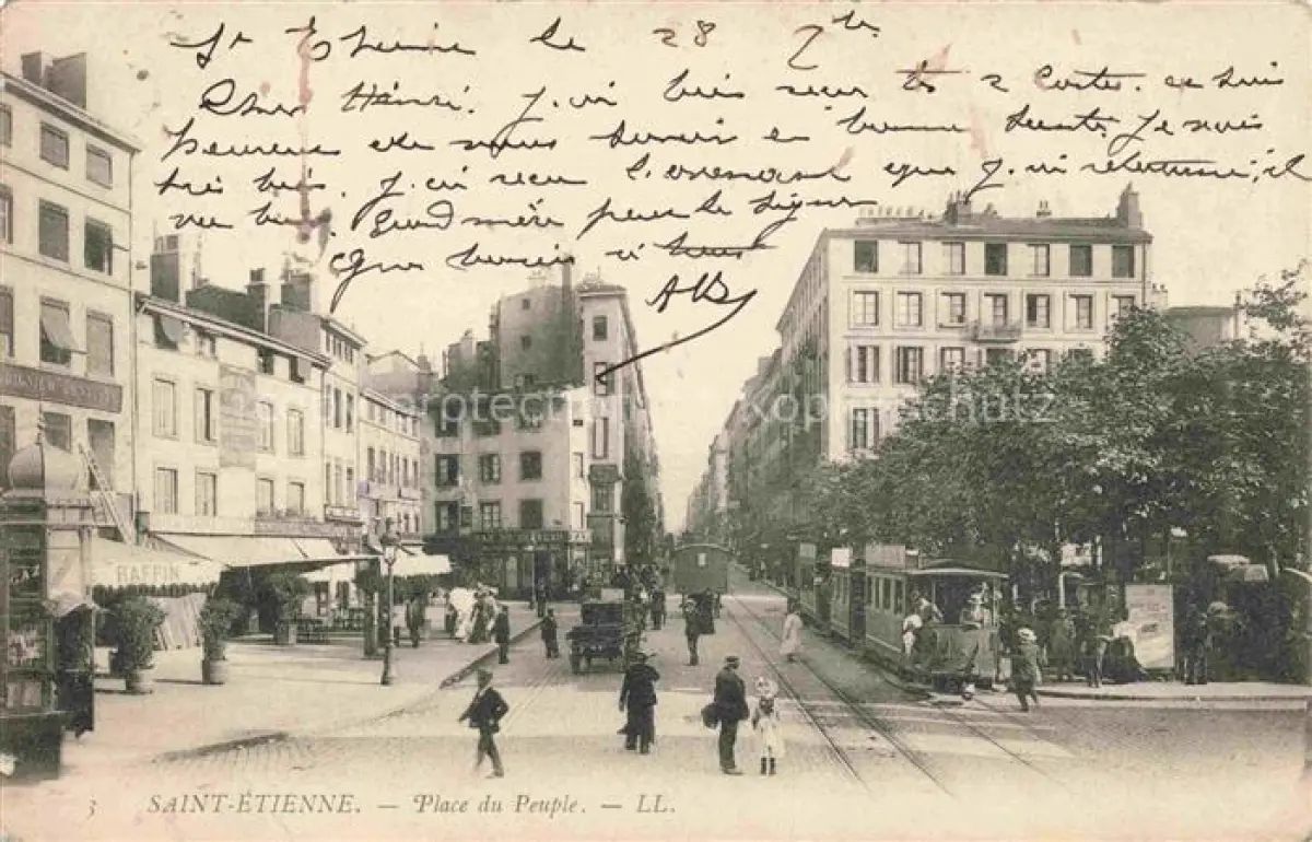 14083313 SAINT-ETIENNE ST-ETIENNE 42 Loire Place du Peuple Tram postalisch gelaufen Erhaltung siehe scans [FriedD77] alte Postkarte Frie Katcode 11170042342218