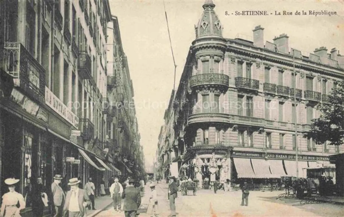 carte postale SAINT-ETIENNE ST-ETIENNE 42 Loire Rue de la République postalisch gelaufen Erhaltung siehe scans [FriedD77]