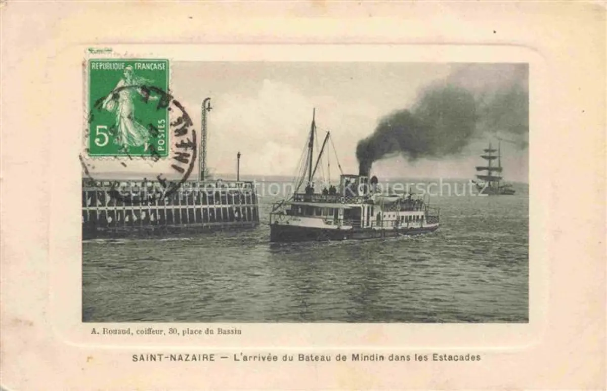 14119292 SAINT-NAZAIRE ST-NAZAIRE 44 Loire-Atlantique Arrivee du Bateau de Mindin dans les Estacades postalisch gelaufen Erhaltung siehe scans [WerneD78] alte Postkarte Wern Katcode 11170044344184