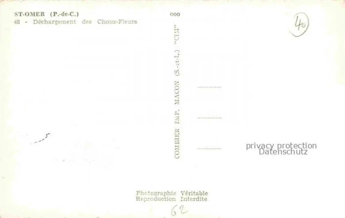 14096612 SAINT-OMER 62 Pas-de-Calais Déchargement des Choux-Fleurs postalisch nicht gelaufen Erhaltung siehe scans [FriedD77] Frie Katcode 11170062562765
