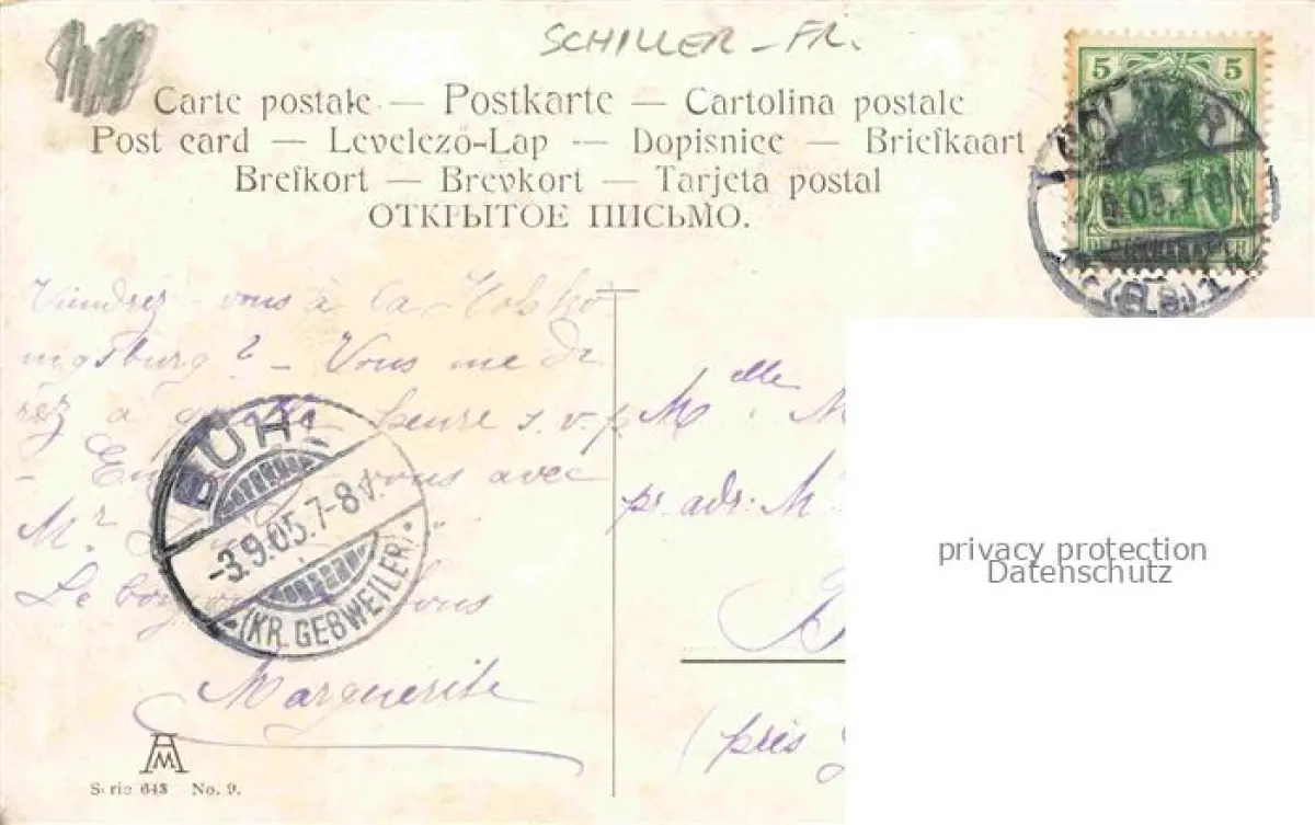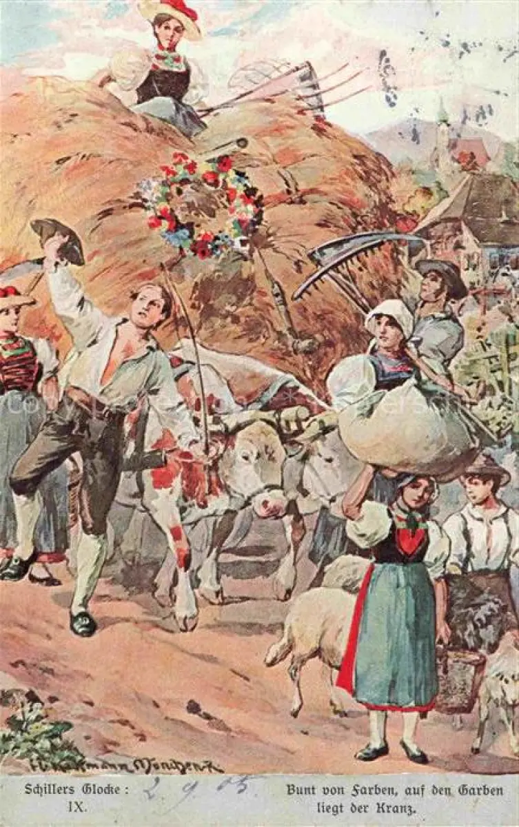 alte Postkarte SCHILLER Friedrich (1759-1805) Dichter Weimar Schillers Glocke IX Kuehe Schaffe postalisch gelaufen Erhaltung siehe scans [SanaeD93]
