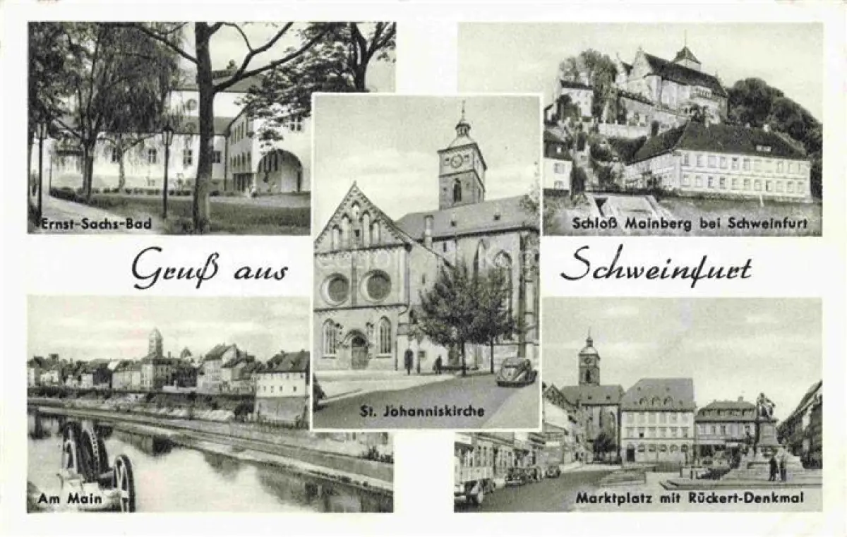 SCHWEINFURT Main Ernst Sachs Bad Schloss Mainberg Mainpartie St Johanniskirche Marktplatz mit Rueckert Denkmal postalisch nicht gelaufen Erhaltung siehe scans [WerneD78]