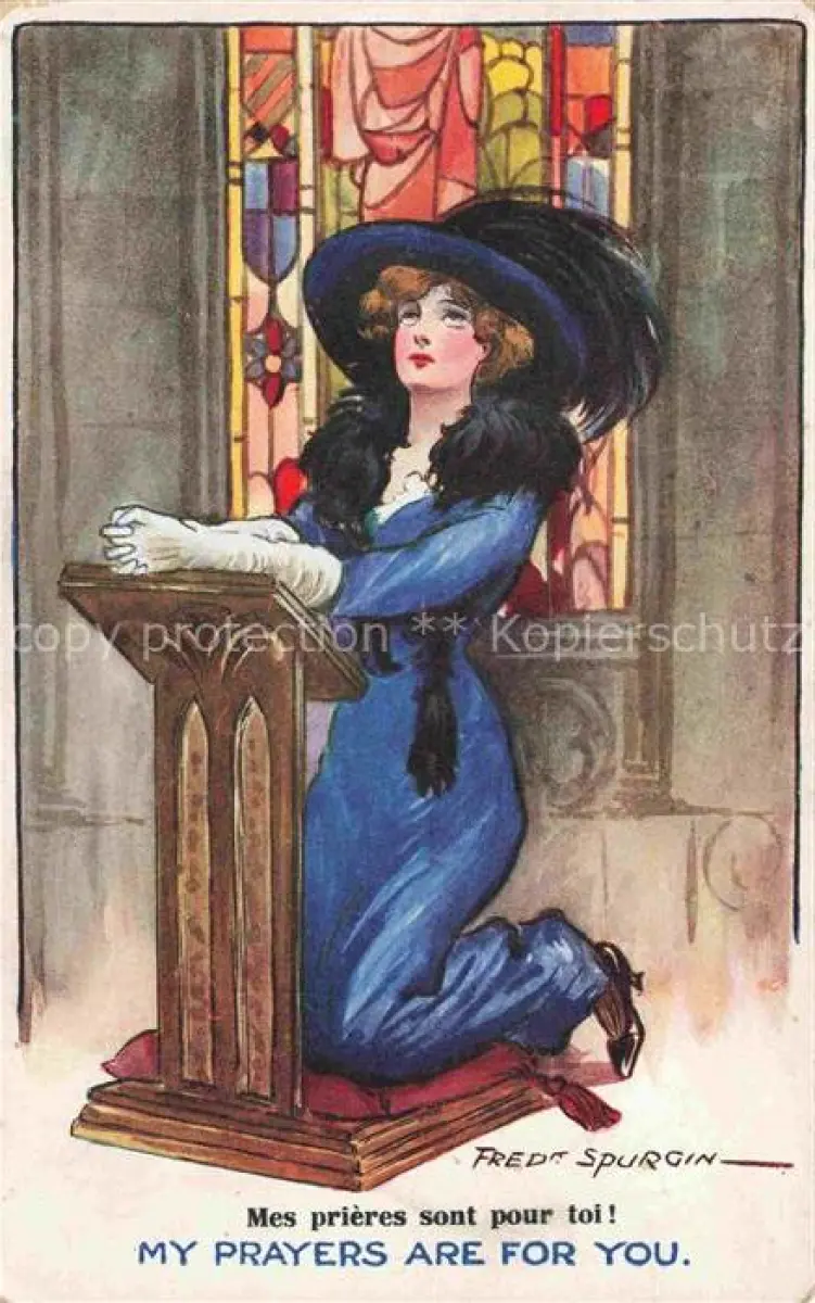 14101532 SPURGIN Fred Kuenstlerkarte Prayers Prieres Frau Hutmode Eleven Twenty TwoNo. 1133 postalisch nicht gelaufen Erhaltung siehe scans [SanaeD93] Sana Katcode 22240000003200