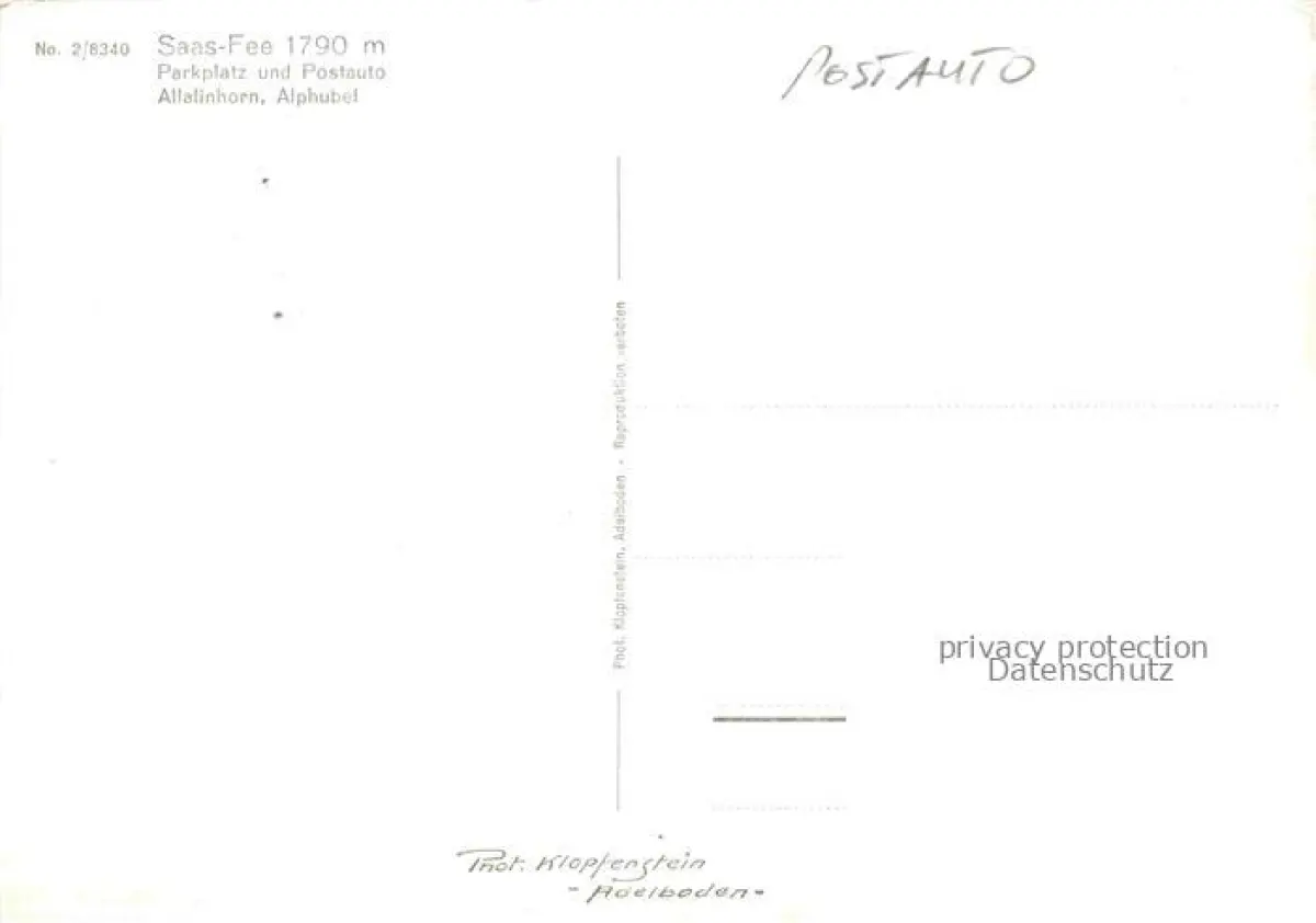 14117613 Saas-Fee VISP VS Parkplatz Postauto Allalinhorn Alphubel Wintersportplatz Walliser Alpen postalisch nicht gelaufen Erhaltung siehe scans [FriedD77] Frie Katcode 11470230750738