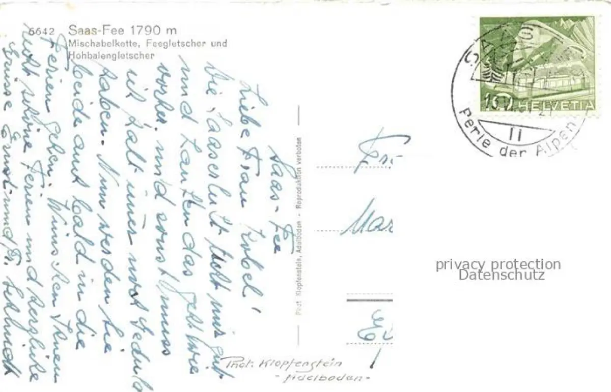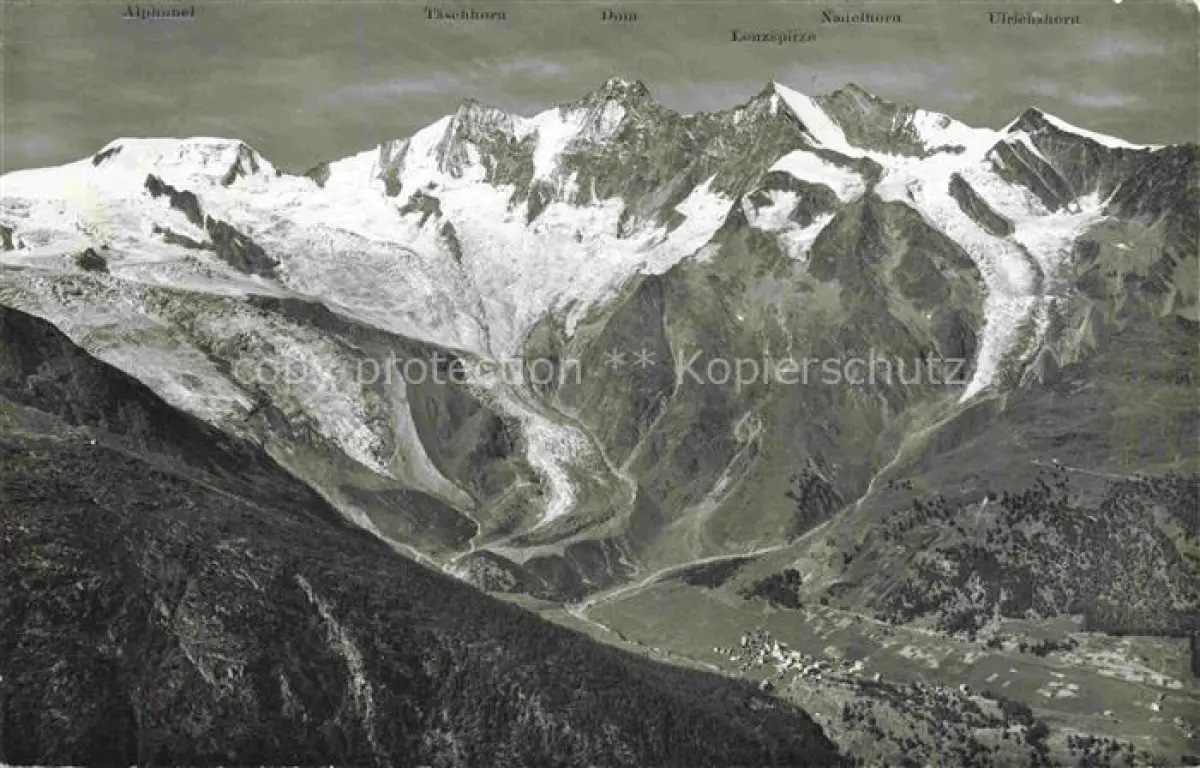 alte Postkarte Saas-Fee VISP VS mit Mischabelkett Feegletscher und Hohbalengletscher postalisch gelaufen Erhaltung siehe scans [WerneD78]