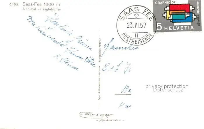Saas-Fee_VS mit Alphubel und Feegletscher postalisch gelaufen 1957 Erhaltung siehe scans [FriedD77] Frierer