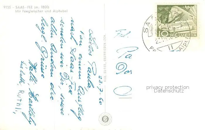 Saas-Fee_VS mit Feegletscher und Alphubel postalisch gelaufen 1960 Erhaltung siehe scans [FriedD77] Frierer