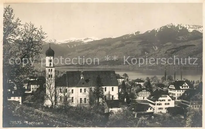 Sachseln_OW Ortsansicht mit Kirche Sarnersee Alpenpanorama Sachseln OW postalisch nicht gelaufen 1921-1965 Erhaltung siehe scans [FriedD77] Frierer