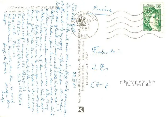 Saint-Aygulf_Var Côte d'Azur vue aérienne Saint-Aygulf Var postalisch gelaufen 1981 Erhaltung siehe scans [FriedD77] Frierer