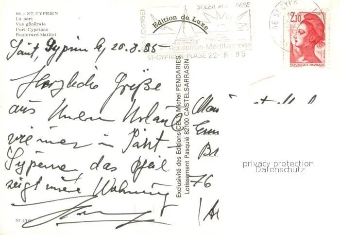 Saint-Cyprien_66_Plage Le port Vue générale Port Cypriano Boulevard Maillol postalisch gelaufen 1985 Erhaltung siehe scans [FriedD77] Frierer