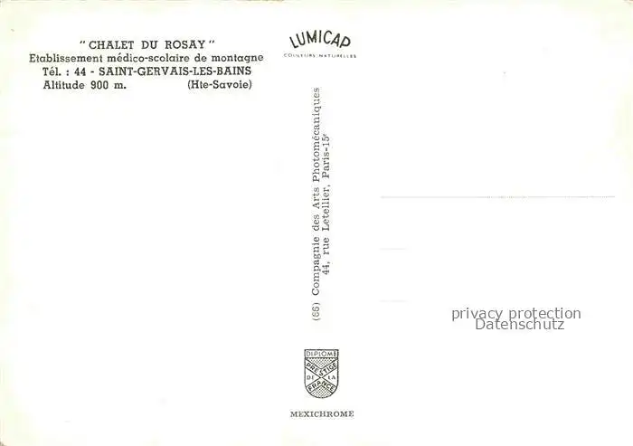 Saint-Gervais-les-Bains 74 Haute-Savoie Chalet du Rosay Etablissement médico-scolaire de montagne postalisch nicht gelaufen Erhaltung siehe scans [FriedD77]