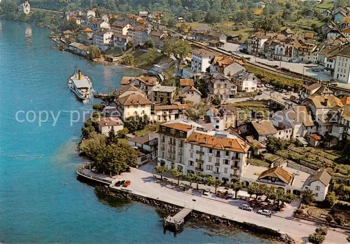 Saint-Gingolph_Haute_Savoie Passage du bateau vue aérienne Saint-Gingolph_Haute postalisch gelaufen 1975 Erhaltung siehe scans [FriedD77] Frierer
