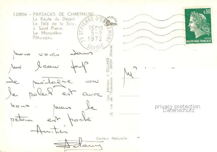 Saint-Pierre-de-Chartreuse Paysages de Chartreuse Route du Désert Télé de la Scia Monastère Paturages Saint-Pierre-de-Chartreuse postalisch gelaufen 1972 Erhaltung siehe scans [FriedD77] Frierer