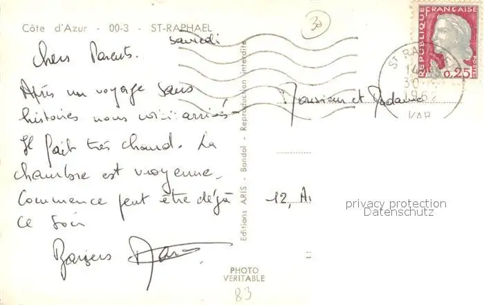 Saint-Raphael_Var Restaurant Saint-Raphael Var postalisch gelaufen 1962 Erhaltung siehe scans [FriedD77] Frierer