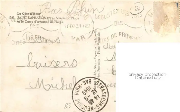 Saint-Raphael_Var Vue sur la plage Camp d'Aviation de Fréjus Cote d'Azur Saint-Raphael Var postalisch gelaufen 1949 Erhaltung siehe scans [FriedD77] Frierer