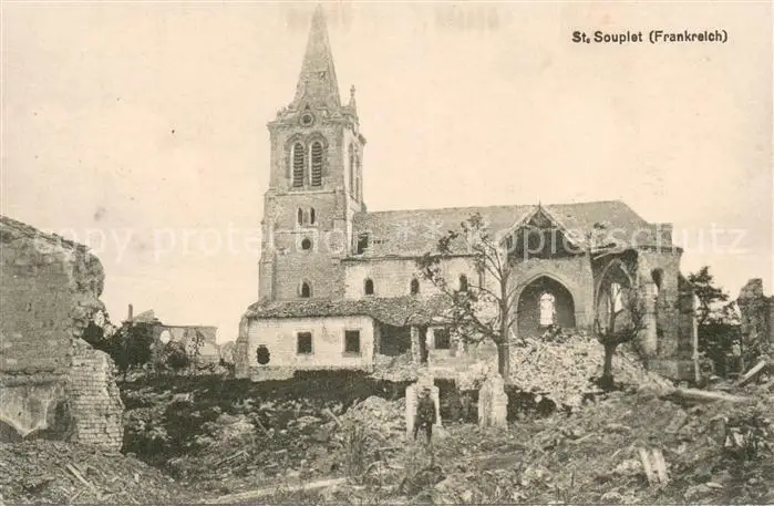 AK / Ansichtskarte Saint Souplet sur Py Zerstoerte Kirche in WK1 Saint Souplet sur Py