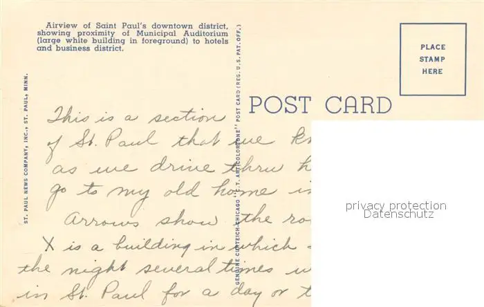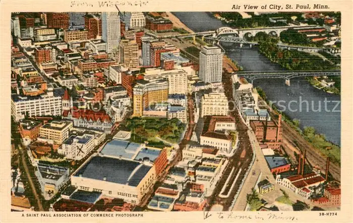 Saint_Paul_Minnesota Air view of Saint Pauls downtown district showing proximity of Municipal Auditorium postalisch nicht gelaufen nach 1965 Erhaltung siehe scans [WerneD78] WernPID7