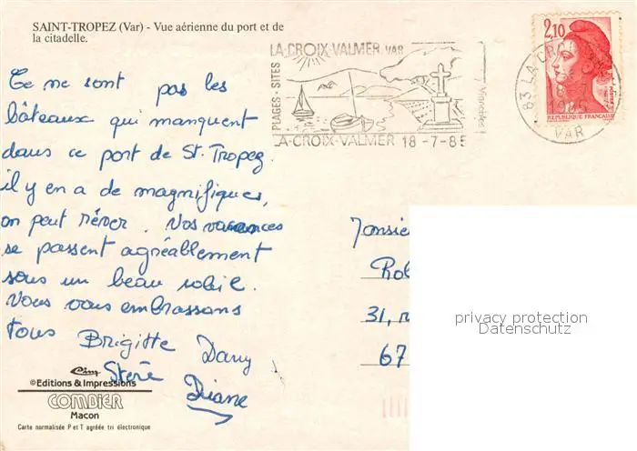 Saint_Tropez_Var Vue aérienne du port et de la citadelle Côte d'Azur Saint_Tropez_Var postalisch gelaufen 1985 Erhaltung siehe scans [FriedD77] Frierer