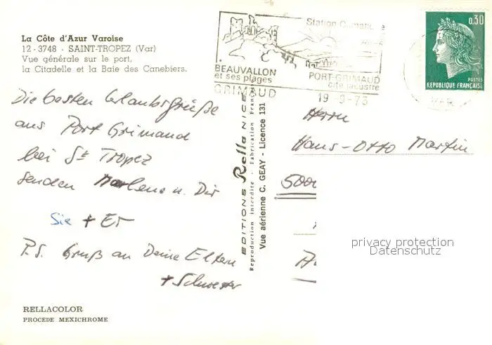 Saint_Tropez_Var Vue generale aerienne sur le port La Citadelle et la Baie des Canebiers Saint_Tropez_Var postalisch gelaufen 1973 Erhaltung siehe scans [WerneD78] WernPID7