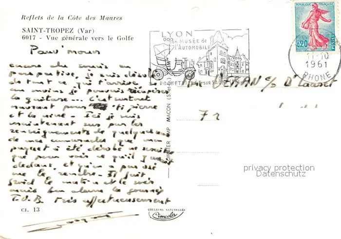 Saint_Tropez_Var Vue generale vers le Golfe Saint_Tropez_Var postalisch gelaufen 1961 Erhaltung siehe scans [WerneD78] WernPID7