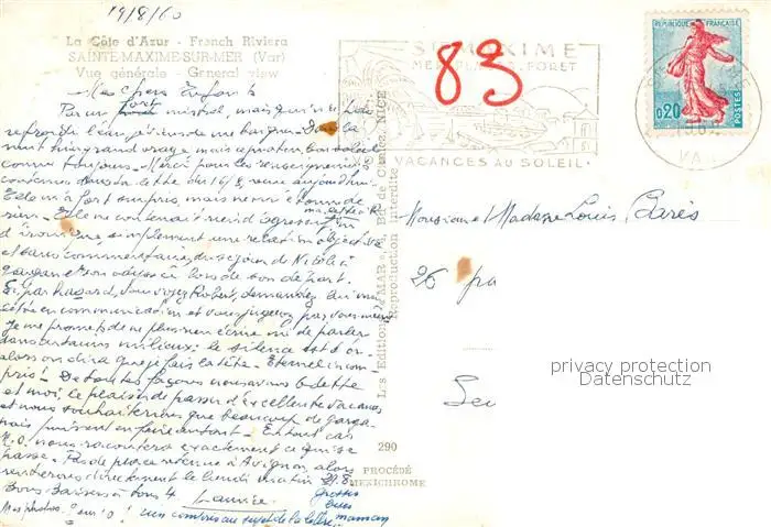 Sainte-Maxime-sur-Mer_83 Vue generale postalisch gelaufen 1964 Erhaltung siehe scans [WerneD78] WernPID7