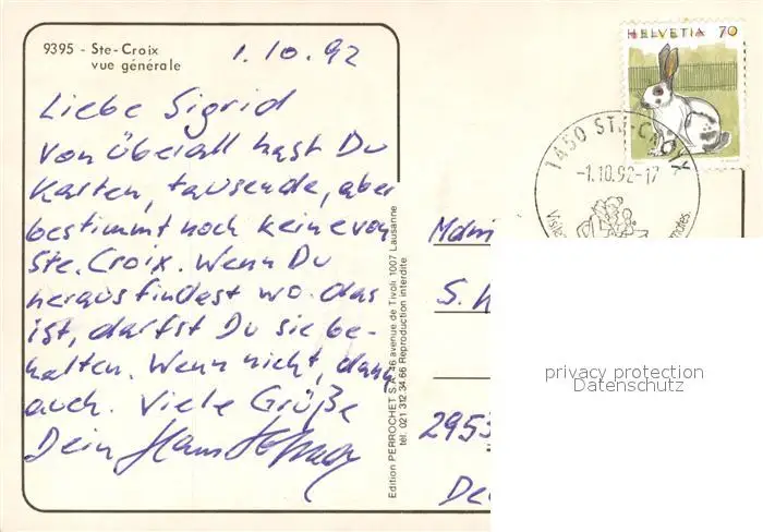 Sainte_Croix_VD Vue aérienne Sainte_Croix_VD postalisch gelaufen 1992 Erhaltung siehe scans [FriedD77] Frierer
