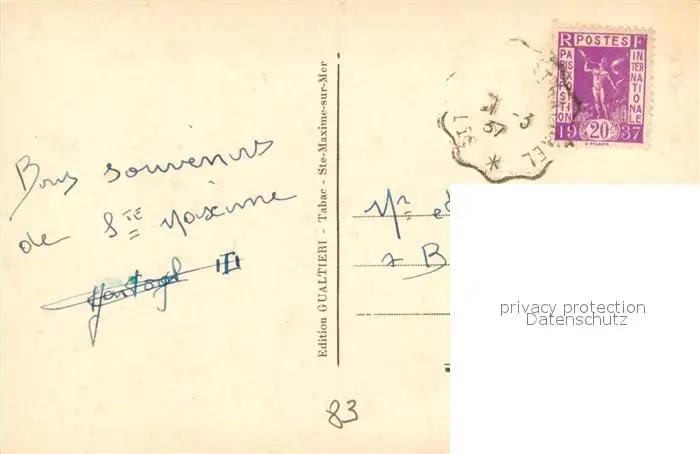 Sainte_Maxime_sur_Mer_Var Vue prise de la Place des Palmiers Sainte_Maxime_sur_Mer_Var postalisch gelaufen 1937 Erhaltung siehe scans [WerneD78] WernPID7