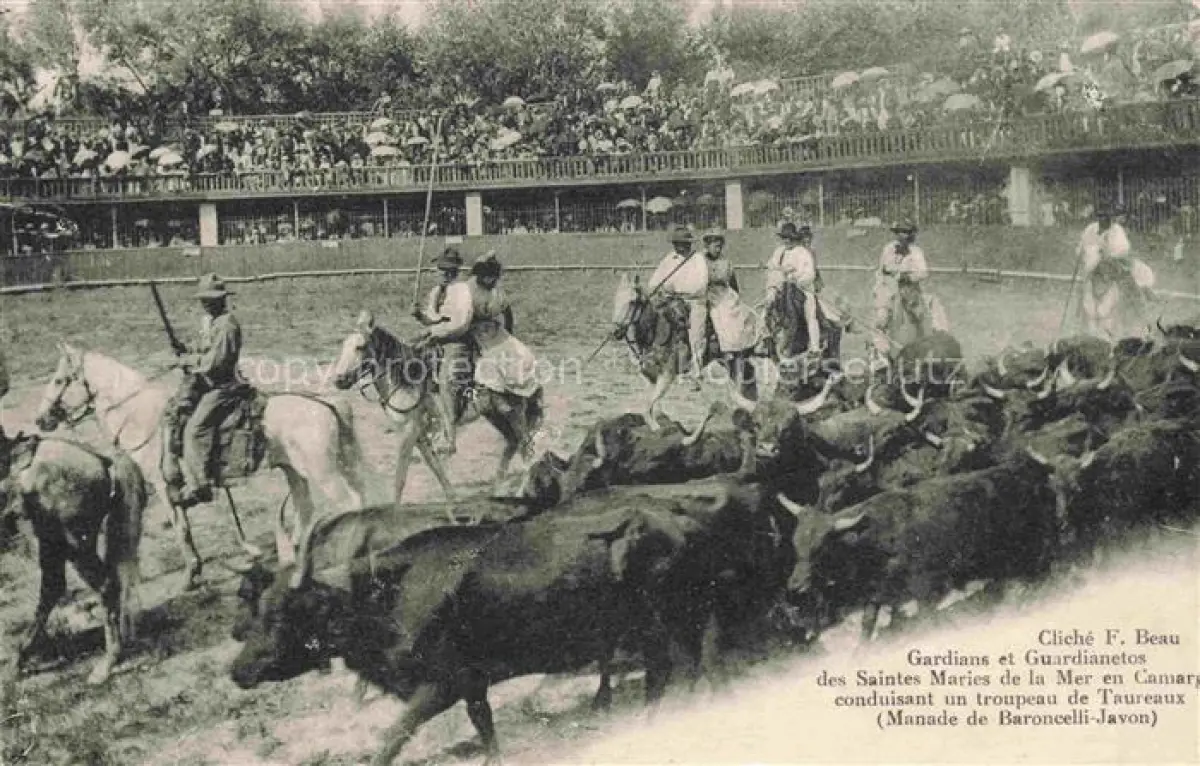 14106720 Saintes-Maries-de-la-Mer 13 Bouches-du-Rhone Gardians et Guardianetos en Camary conduisant un troupeau de Taureaux postalisch nicht gelaufen Erhaltung siehe scans [WerneD78] Wern Katcode 11170013213096