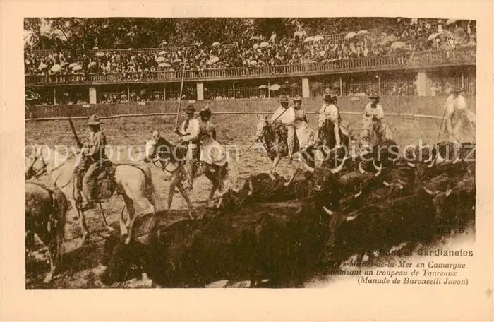 Saintes-Maries-de-la-Mer en Camargue conduisant un troupeau de Taureaux Saintes-Maries-de-la-Mer postalisch nicht gelaufen 1921-1965 Erhaltung siehe scans [FriedD77] Frierer