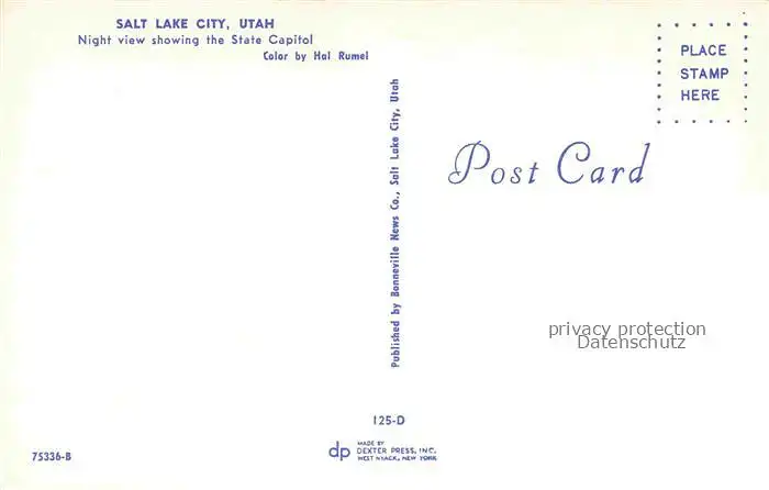 Salt Lake City Utah USA Night view showing the State Capital postalisch nicht gelaufen Erhaltung siehe scans [WerneD78]