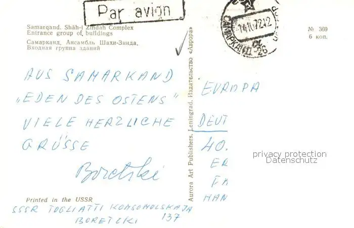 Samarkand Shah-i Zidah Complex Samarkand postalisch gelaufen 1972 Erhaltung siehe scans [WerneD78] WernPID7