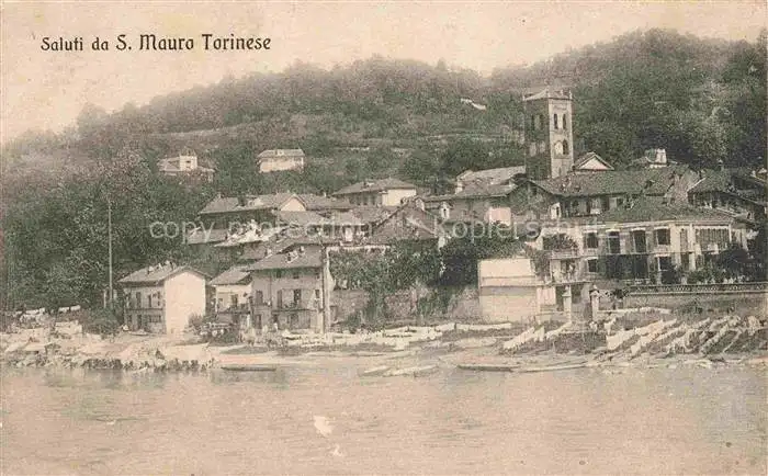 old postcard San Mauro Torinese TORINO Turin IT Ansicht vom See aus postalisch gelaufen Erhaltung siehe scans [FriedD77]