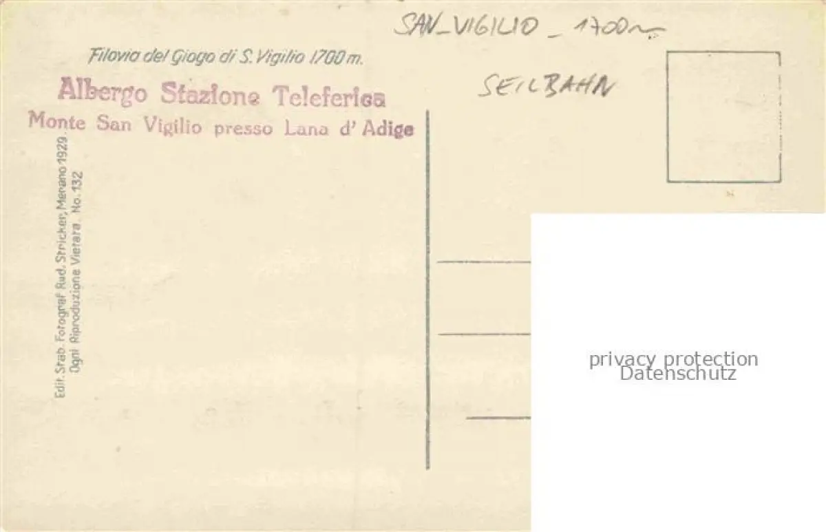 San Vigilio 1700m MERANO Meran IT Seilbahn postalisch nicht gelaufen Erhaltung siehe scans [IrynaD87] Iryn Katcode 11240