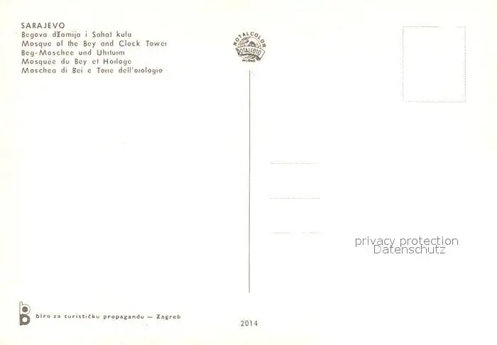 Sarajevo Mosque of the Bey and Clock Tower Sarajevo postalisch nicht gelaufen nach 1965 Erhaltung siehe scans [LiesaD40] LiesID40