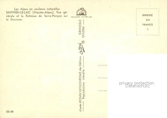 Savines-le-Lac Vue generale et la Retenue de Serre Poncon sur la Durance Savines-le-Lac postalisch nicht gelaufen nach 1965 Erhaltung siehe scans [WerneD78] WernPID7