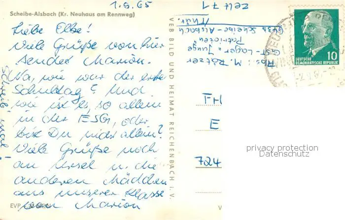 Scheibe-Alsbach Teilansichten Erholungsheim Schwarzaquelle Blick zur Talsperre Scheibe-Alsbach postalisch gelaufen 1965 Erhaltung siehe scans [WerneD78] WernPID7