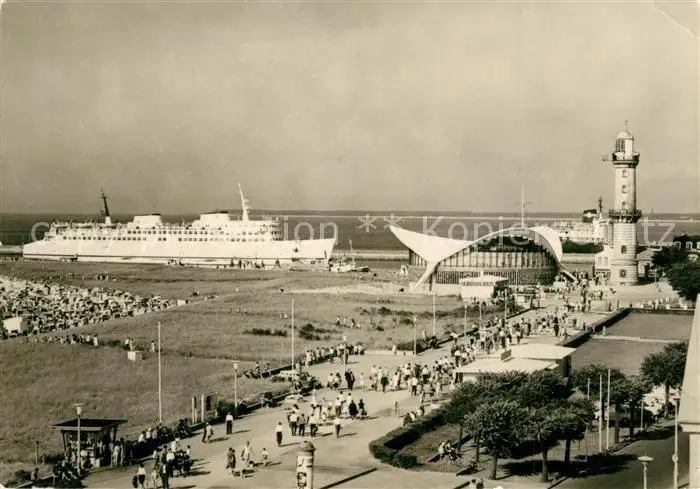 AK / Ansichtskarte Schiffe_Ships_Navires Faehrschiff Warnemuende Mole Gaststaette Teepott Schiffe_Ships_Navires