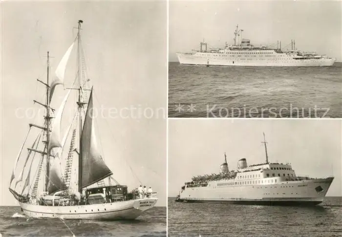 AK / Ansichtskarte Schiffe_Ships_Navires Segelschulschiff Wilhelm Pieck MS V?lkerfreundschaft F?hrschiff Sassnitz