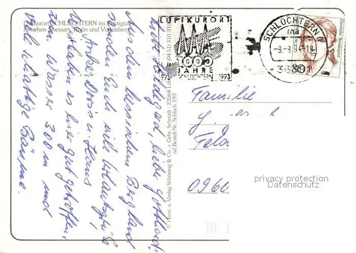 Schluechtern Ehem Kloster Stadtpark Rathaus Brunnen Kirche Schloss Unter den Linden Fachwerkhaeuser Schluechtern postalisch gelaufen 1994 Erhaltung siehe scans [FriedD77] Frierer